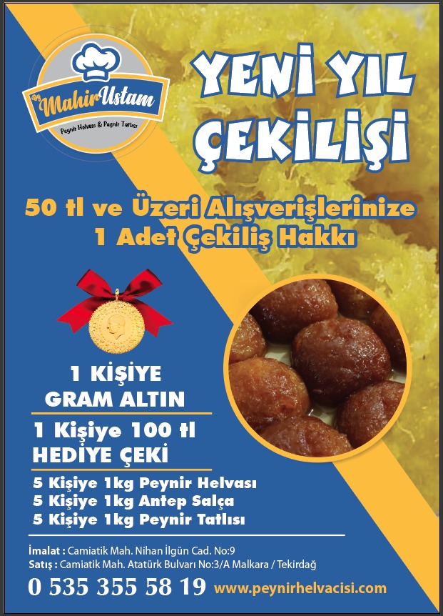 Mahir UstamPeynir Helvasıve Şarküteri olarak yeni yıl için özel olarak organize ettiğimiz çekilişimiz bünyesinde;